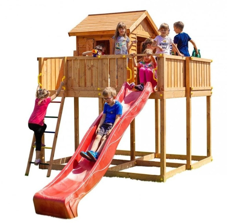 Spielhaus XL My Space mit Rutsche, Holzleiter, Holzhaus und Anbau