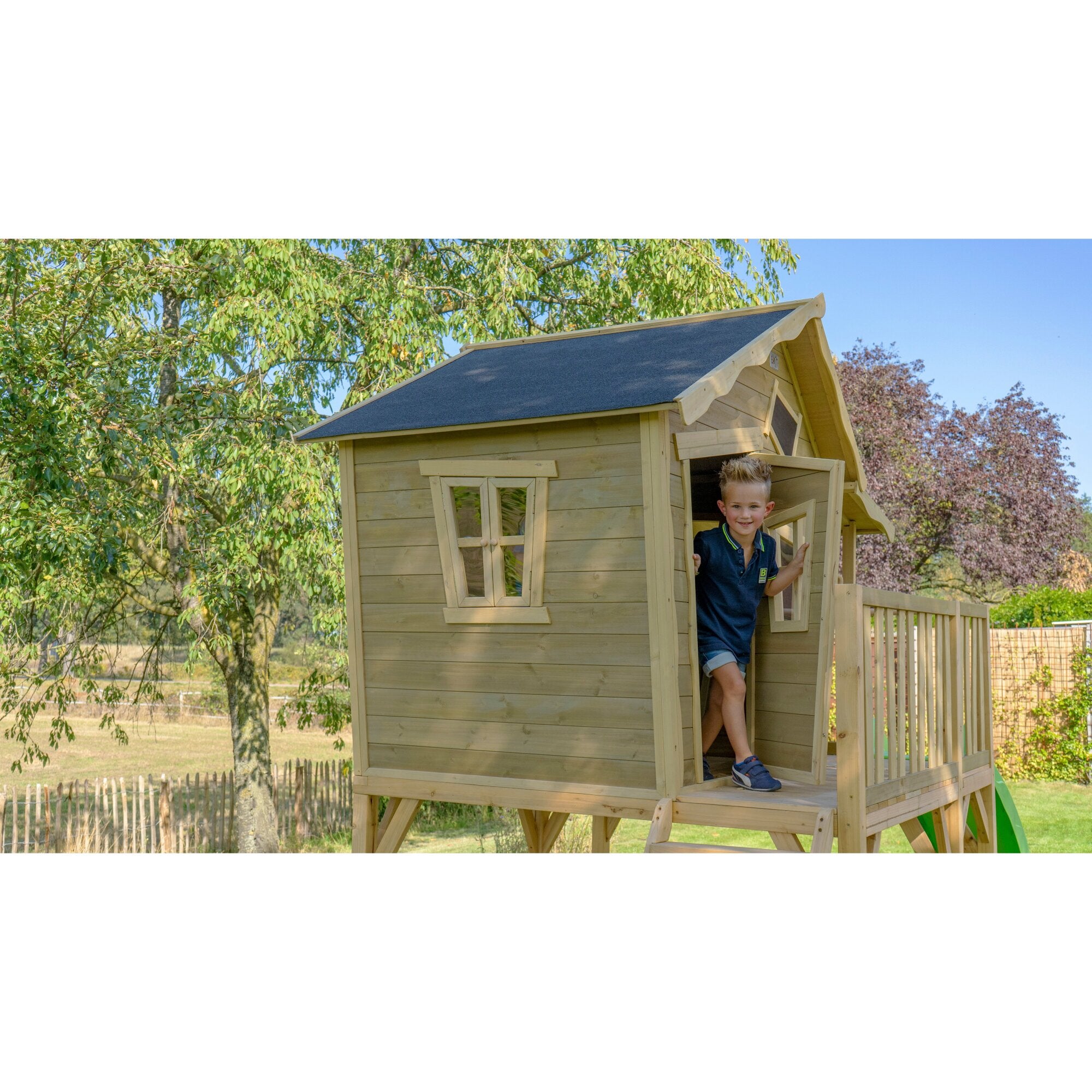 Spielturm Fortress mit Rutsche, Steuerrad, Strickleiter und Kletterseil