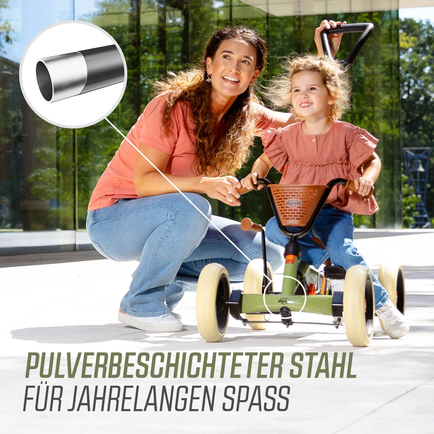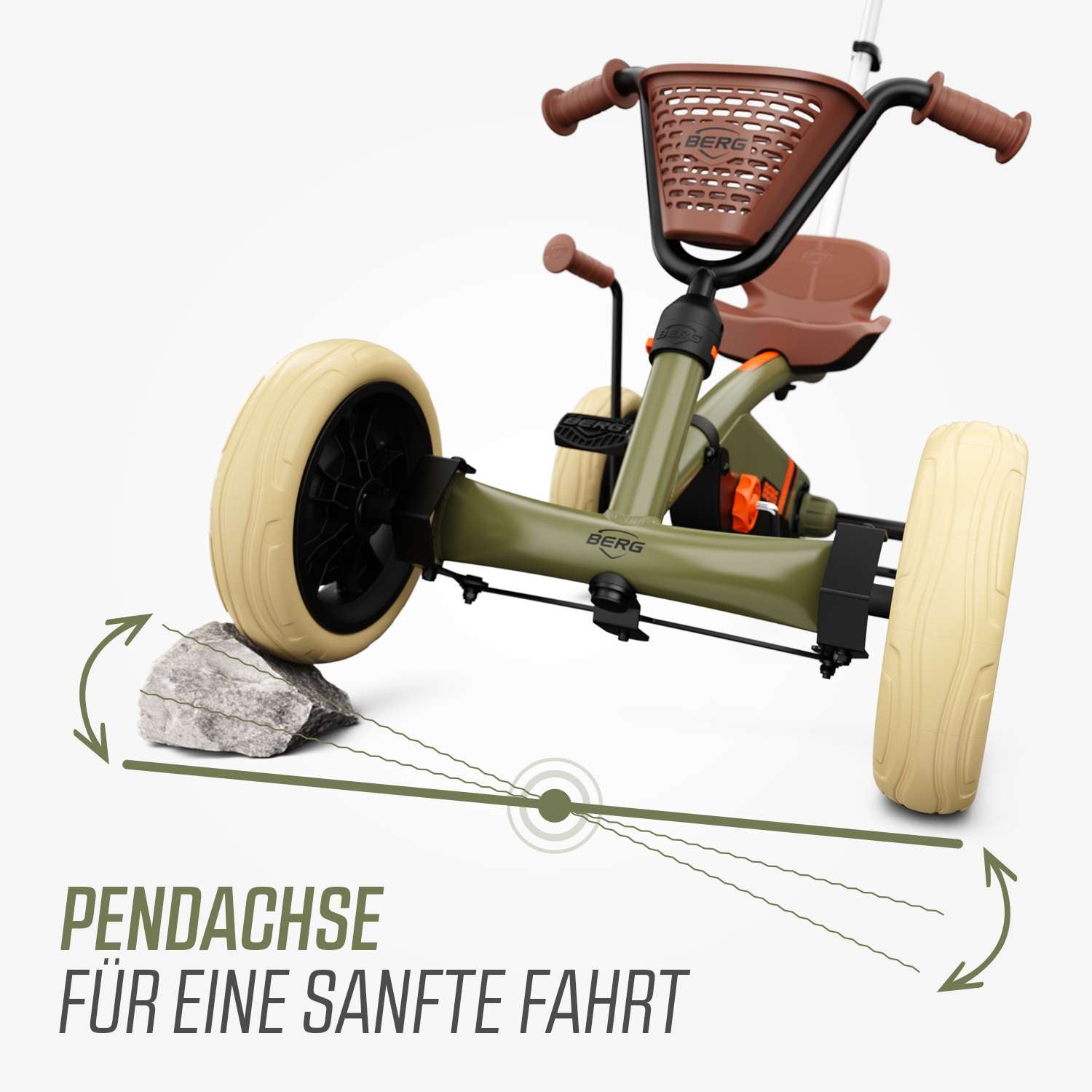 This wonderful vehicle belongs to the "Buzzy" family from BERG. This vehicle immediately catches the eye with its modern design. With the BERG Gokart Buzzy Retro 2-in-1 Green from BERG, even the littlest ones are well equipped for any terrain.Never check air pressure again