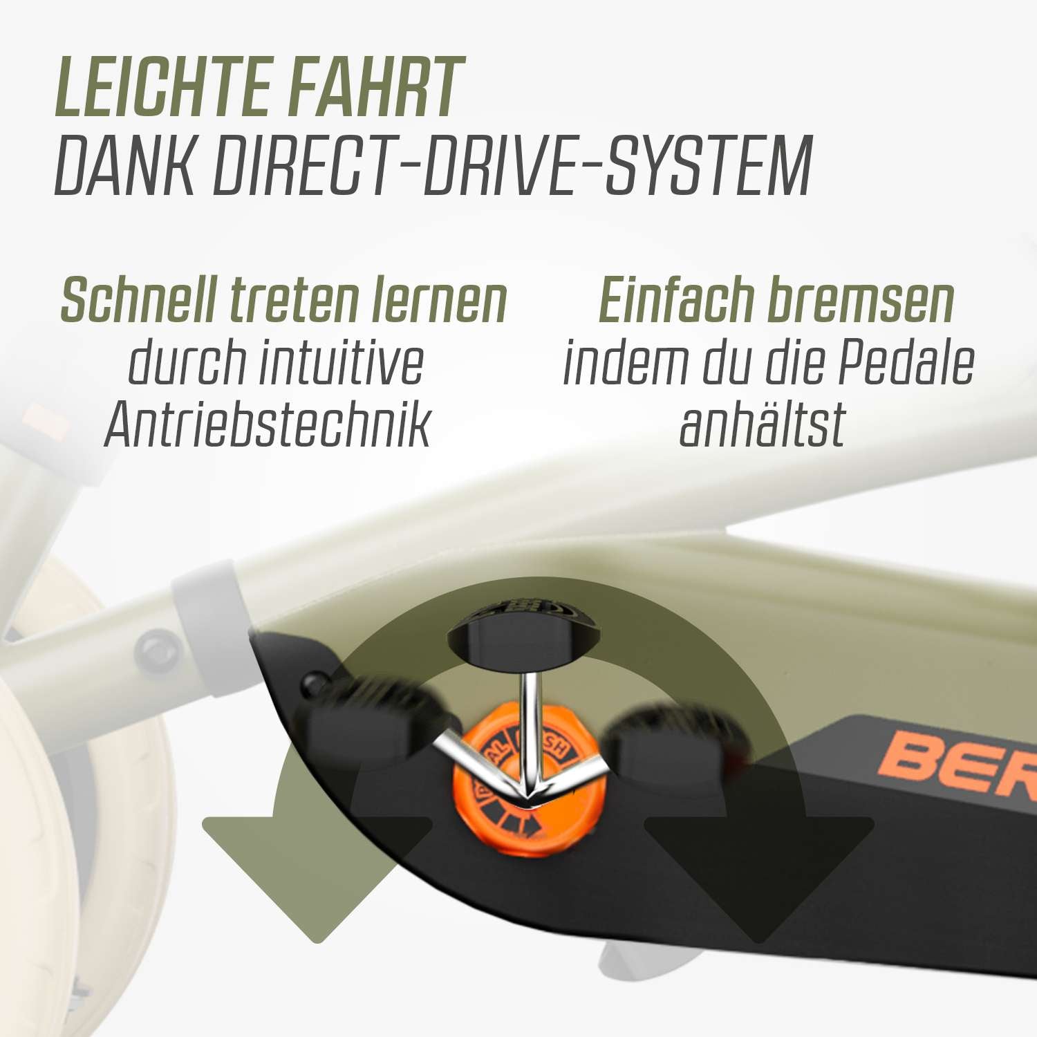 Since the handlebars and seat can be adjusted without any problems, the BERG Gokart Buzzy Retro 2-in-1 Green is suitable for adventurers aged 2 to 5 years. The direct drive system ensures smooth and easy pedalling. The pedals are not directly connected to the front wheels, so the feet remain in a resting position when the little adventurer just lets himself drift. Not only does the vehicle look great, it is also an ideal tool for small children to learn to pedal. Traffic jams are guaranteed at the neighbors'. A great vehicle for little heroes with a height of 80 to 120 cm.So why a Buzzy from BERG?
