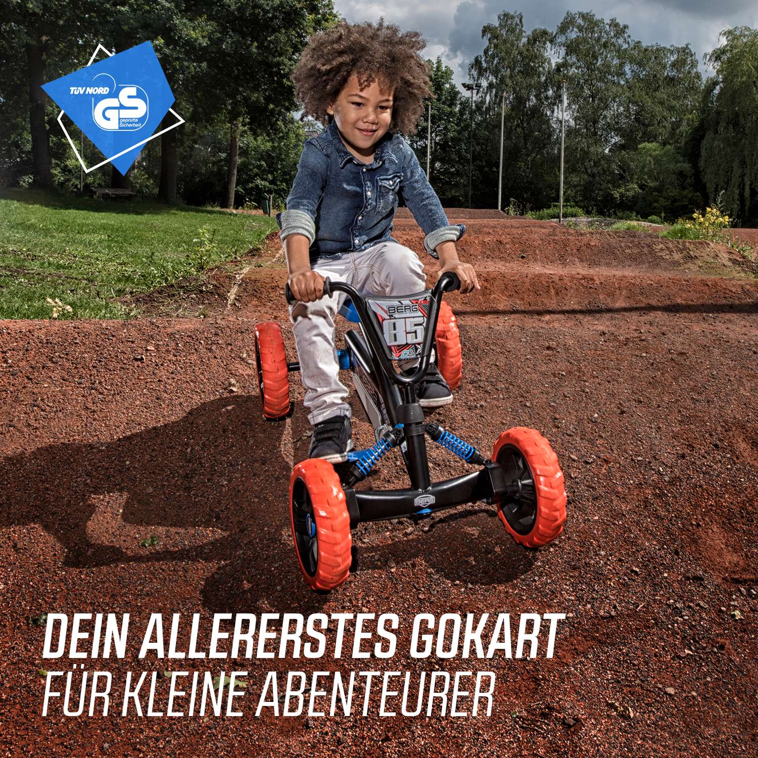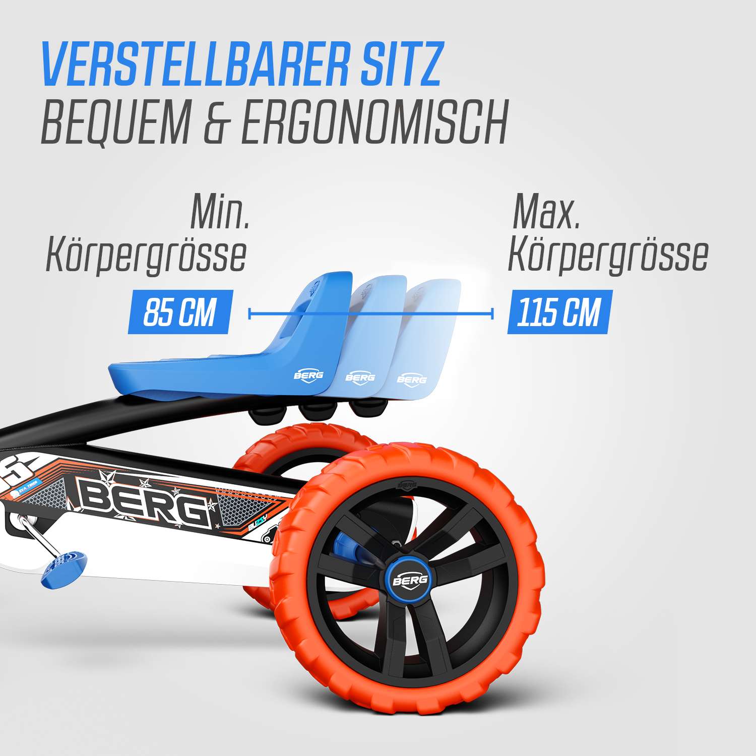 Dank der vier genialen EVA-Massivreifen fährst du auf deinem Gefährt nicht nur sicher und stabil, sondern schützt deinen Reifen auch vor einer Reifenpanne. Der BERG Buzzy hat dank der vier EVA-Massivreifen und der Schwenkachse eine top Straßenlage. Im Vergleich zu einem Dreirad hat das Gokart so viel mehr Stabilität. Vorwärts und auch rückwärtsfahren, ist mit diesem Gokart überhaupt kein Problem.