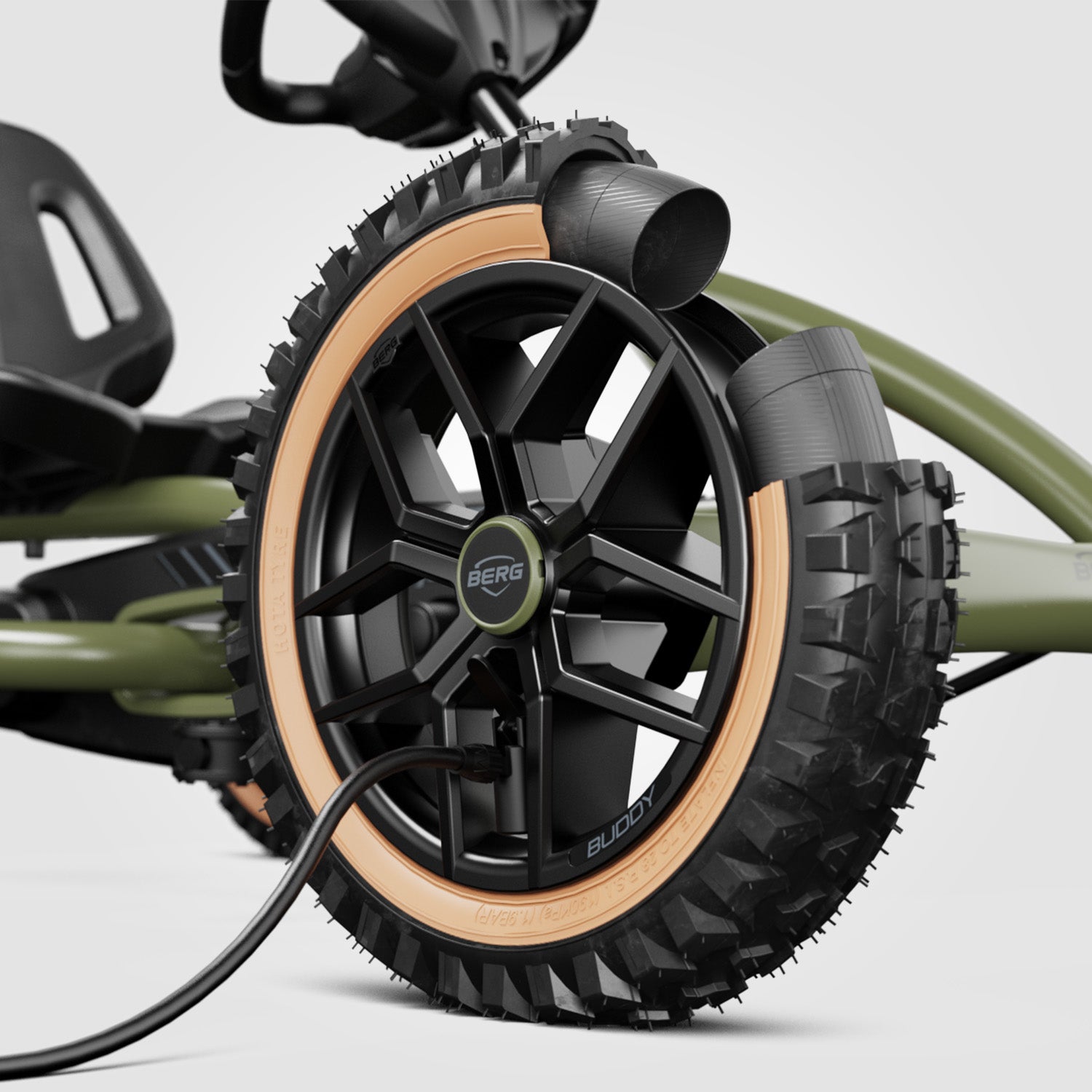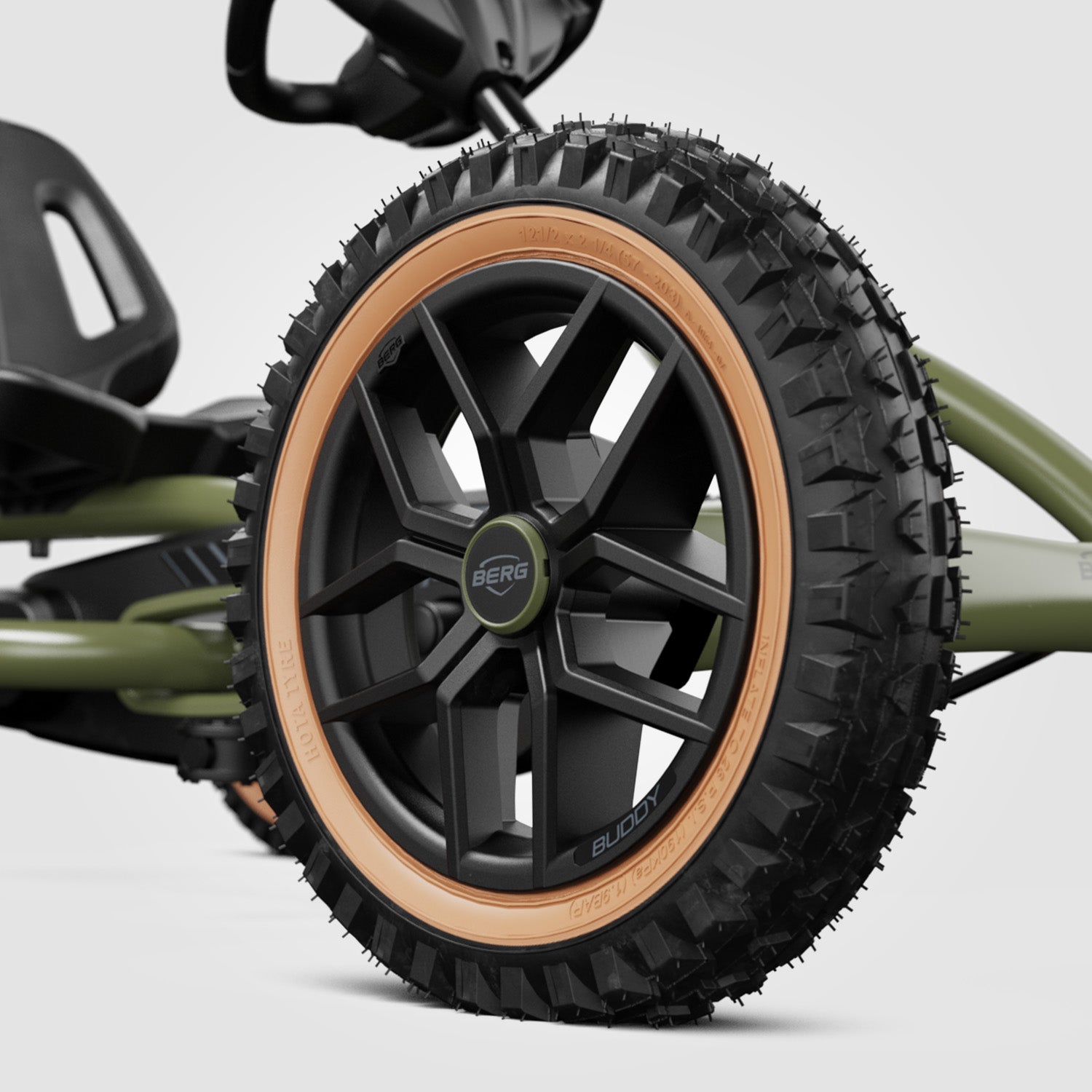 Mit dem BERG Buddy Trail Green erlebst du grenzenlosen Fahrspaß im Gelände! Dieses coole Pedal-Go-Kart im kräftigen Trail Green ist der perfekte Begleiter für kleine Abenteurer, die gerne draußen unterwegs sind. Dank der extra breiten Offroad-Reifen behältst du auch auf Schotter, Wiese oder Waldwegen immer die volle Kontrolle.