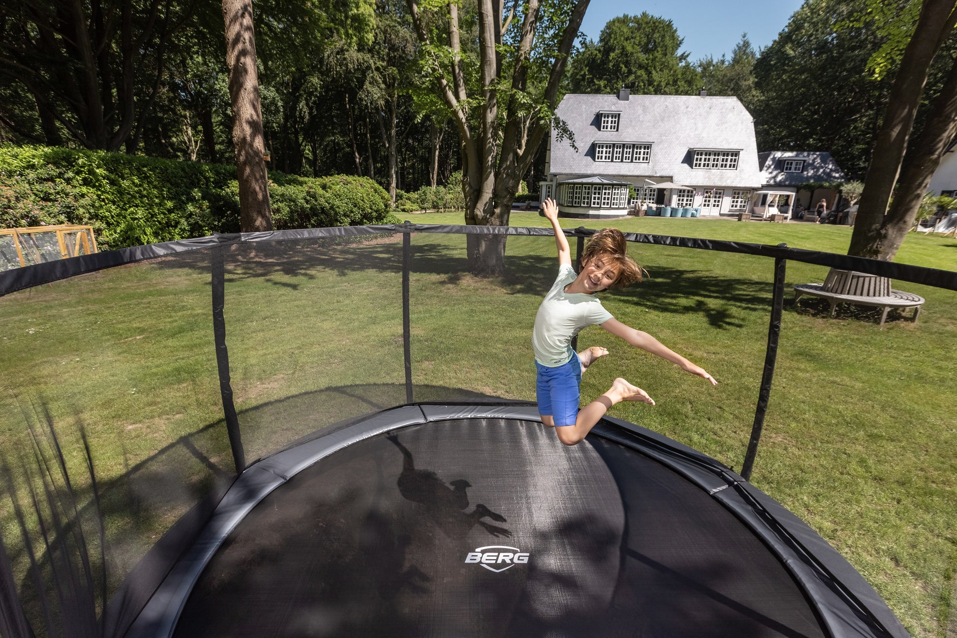 Die BERG Champion Trampoline zeichnen sich durch ihre besonderen Sprungtücher aus. Mit dem AirFlow und AirFlow Pro System erlauben sie einen erhöhten Luftdurchzug. Durch den niedrigeren Widerstand kannst du auf den Champion Trampolinen noch höher springen! Das Sicherheitsnetz Deluxe bietet dir beim Springen vollumfänglichen Schutz. Die Grand Champion Version bietet dir noch mehr Spaß beim Springen! Die ovalen Trampoline mit extra großem Durchmesser ermöglichen dir, Kunststücke aller Art zu lernen und akrobatische Sprünge zu absolvieren. Dabei schützt dich das Deluxe Sicherheitsnetz rundum. Auch für Trampolin Anfänger ist das Grand Champion Trampolin ideal geeignet, da es viel Platz zum Ausprobieren bietet. Eltern können ebenfalls zusammen mit ihren Kleinkindern das Springen lernen.Champion InGround 350 – Das extra große Bodentrampolin