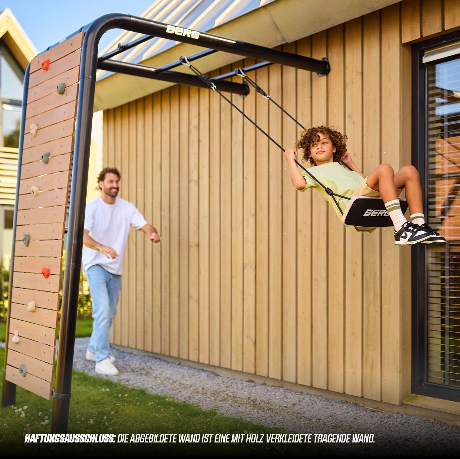 Die BERG PlayBase Wall ist das kompakteste PlayBase-Gestell. Hast du wenig Platz in deinem Garten, um ein Spielgerät aufzustellen? Kein Problem! Die Wall benötigt wenig Bodenfläche und passt daher auch in kleinere Gärten. Das PlayBase Wall-Gestell kann sicher an jede tragende Wand, wie eine Garage, einen Schuppen oder das Wohnhaus, montiert werden. Lies vor der Montage die Anleitung sorgfältig durch, um zu erfahren, wie du das Gestell sicher und korrekt montierst.