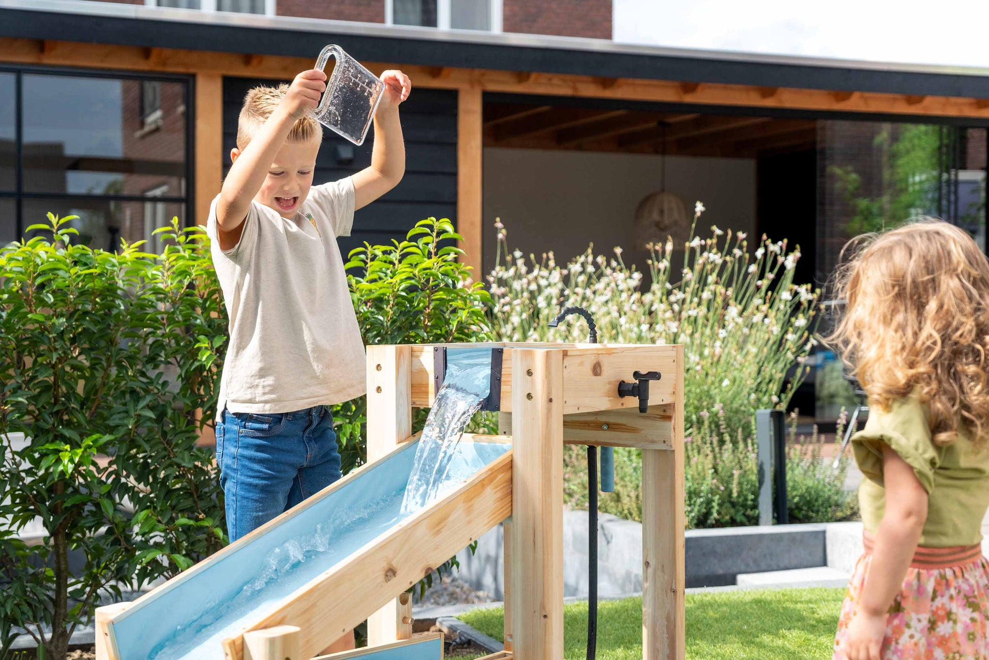Die EXIT AquaFlow 200 fördert nicht nur das kreative Spielen, sondern auch den bewussten Umgang mit Wasser. Das Wasser wird unten aufgefangen und von den Kindern wieder nach oben gepumpt – so geht kaum Wasser verloren.