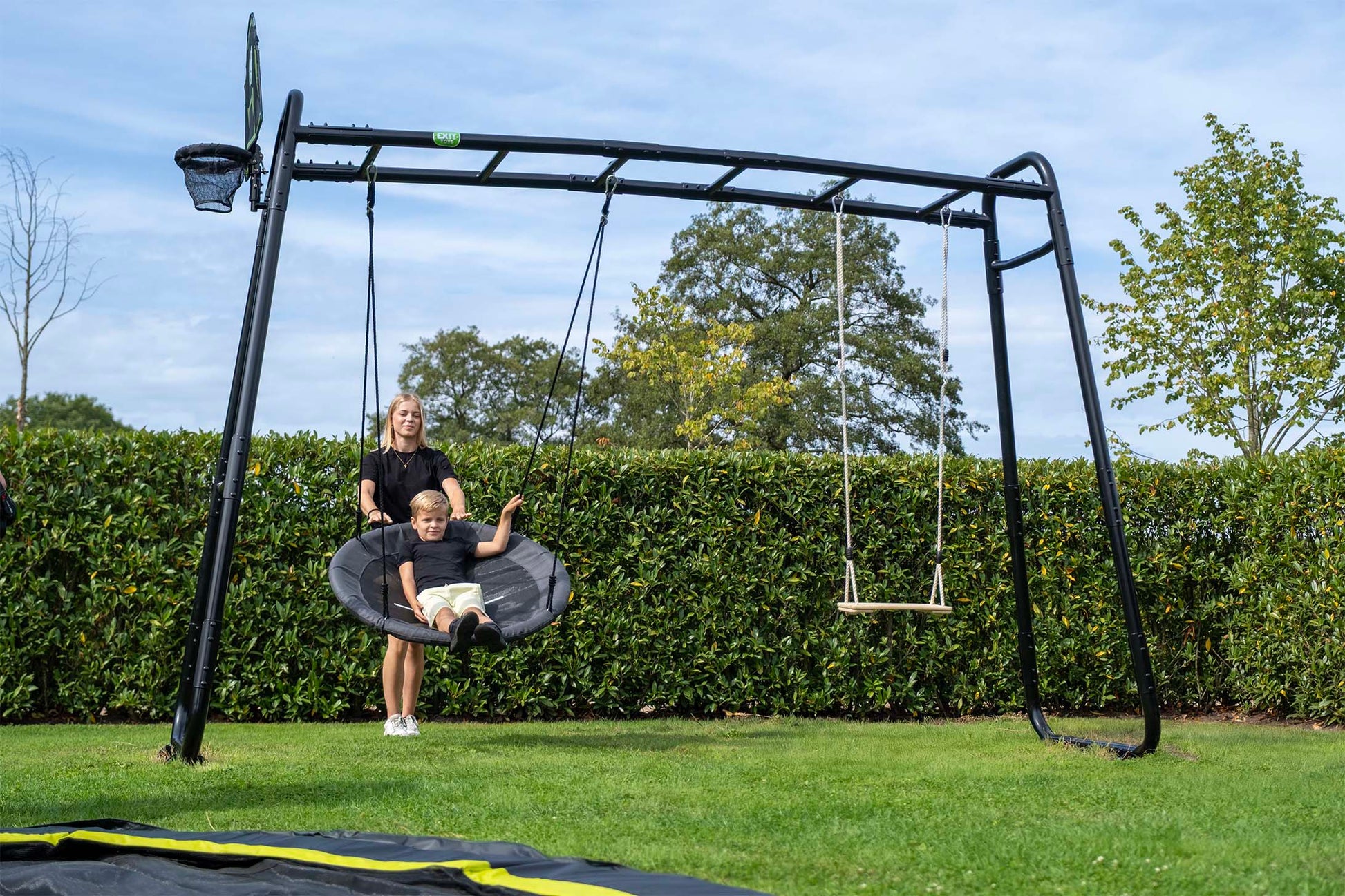 Mit ihrer fast vier Meter langen Konstruktion bietet die EXIT GetSet MB305 besonders viel Bewegungsfreiheit und Abwechslung. Sie verbindet Vielseitigkeit, Sicherheit und hochwertiges Design in einem Gerät und ist ideal für Familien, die ihren Kindern langfristig aktive Spielmöglichkeiten im Freien bieten möchten.