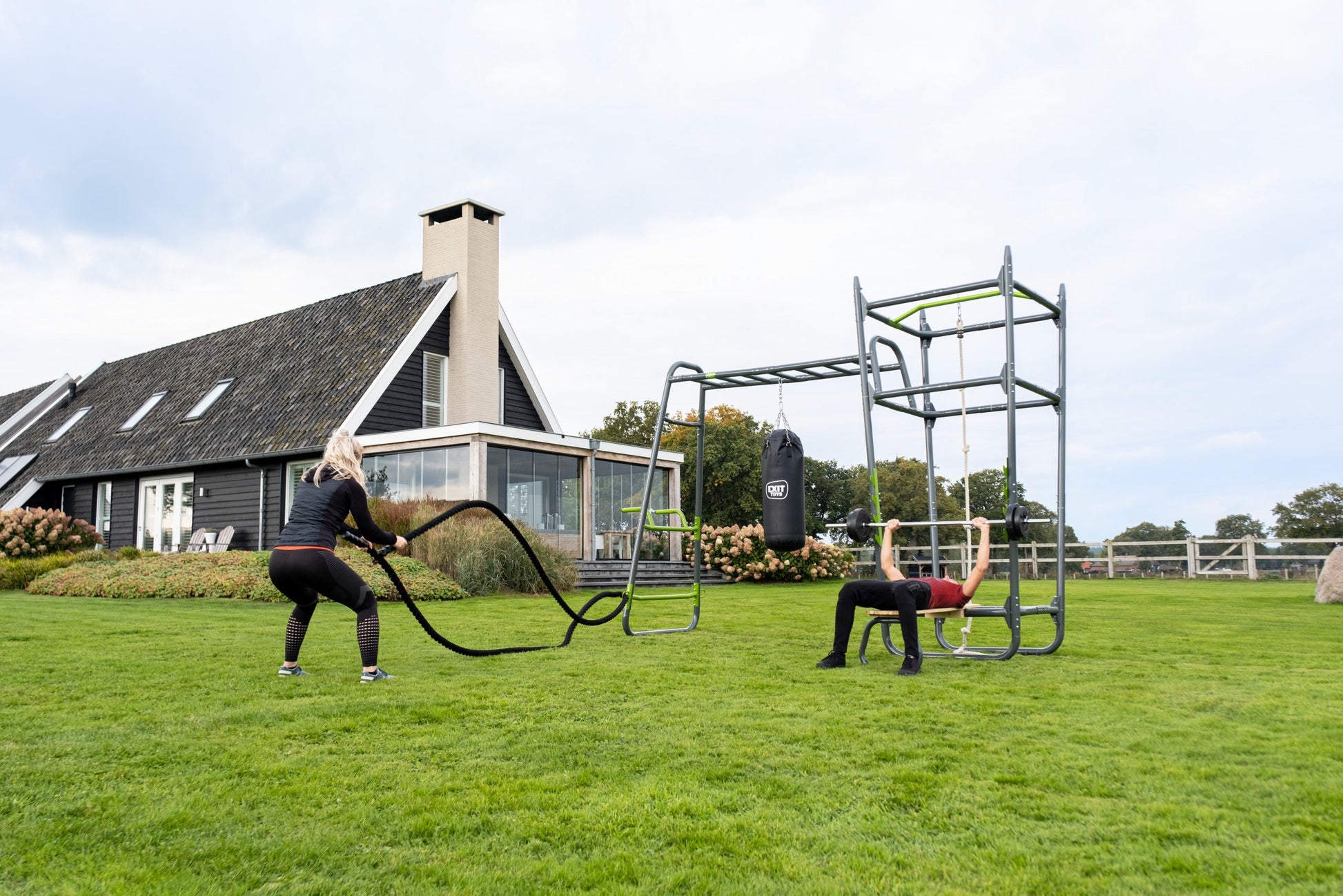 Das EXIT GetSet PS510 ist ein gut vier Meter langes Fitnessgerät für draußen. Folgendes Zubehör ist inbegriffen: Push-up-Stange, Dip Station, Battle Rope-Ringe, Boxsack, Trainingsbank, Hantelstützen, Pull-up-Stange und Kletterseil. Diese Powerstation ist multifunktional einsetzbar und bietet viele Herausforderungen für Erwachsene und sportliche Teenager ab 14. Hol dir mit dem GetSet PS510 das Fitnessstudio ins Haus!Outdoor-Fitness im eigenen Garten