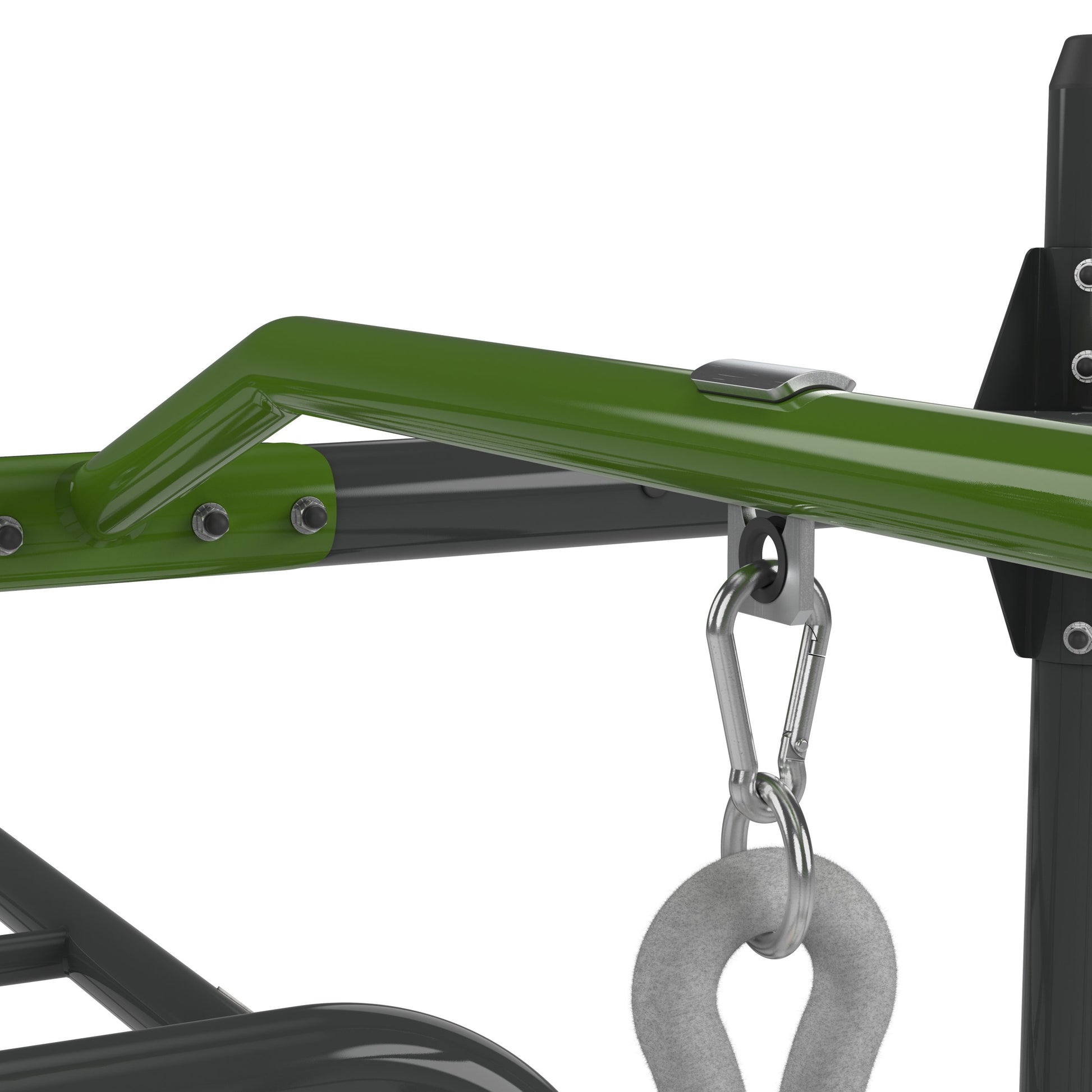 Das GetSet PS510 überzeugt durch sein schlichtes und attraktives Design. Der hochwertige Rahmen ist dunkelgrau und viele Sportzubehörteile aus Stahl sind in einem dekorativen Grünton lackiert. Durch diese Kombination entsteht ein moderner Look, der in jeden Garten passt! Mit dem GetSet PS510 besitzt du ein multifunktional einsetzbares Sportgerät, an dem du deinen sportlichen Lebensstil zelebrierst und viel Spaß hast. Allein, zusammen mit deinen über 14 Jahre alten Kindern oder mit sportlichen Freunden. Jederzeit einsatzbereit. GetSet, sport and have fun together! Das Produkt wird in 9 Paketen geliefert. Der Schnellbeton zur Befestigung ist nicht inbegriffen.Eigenschaften
