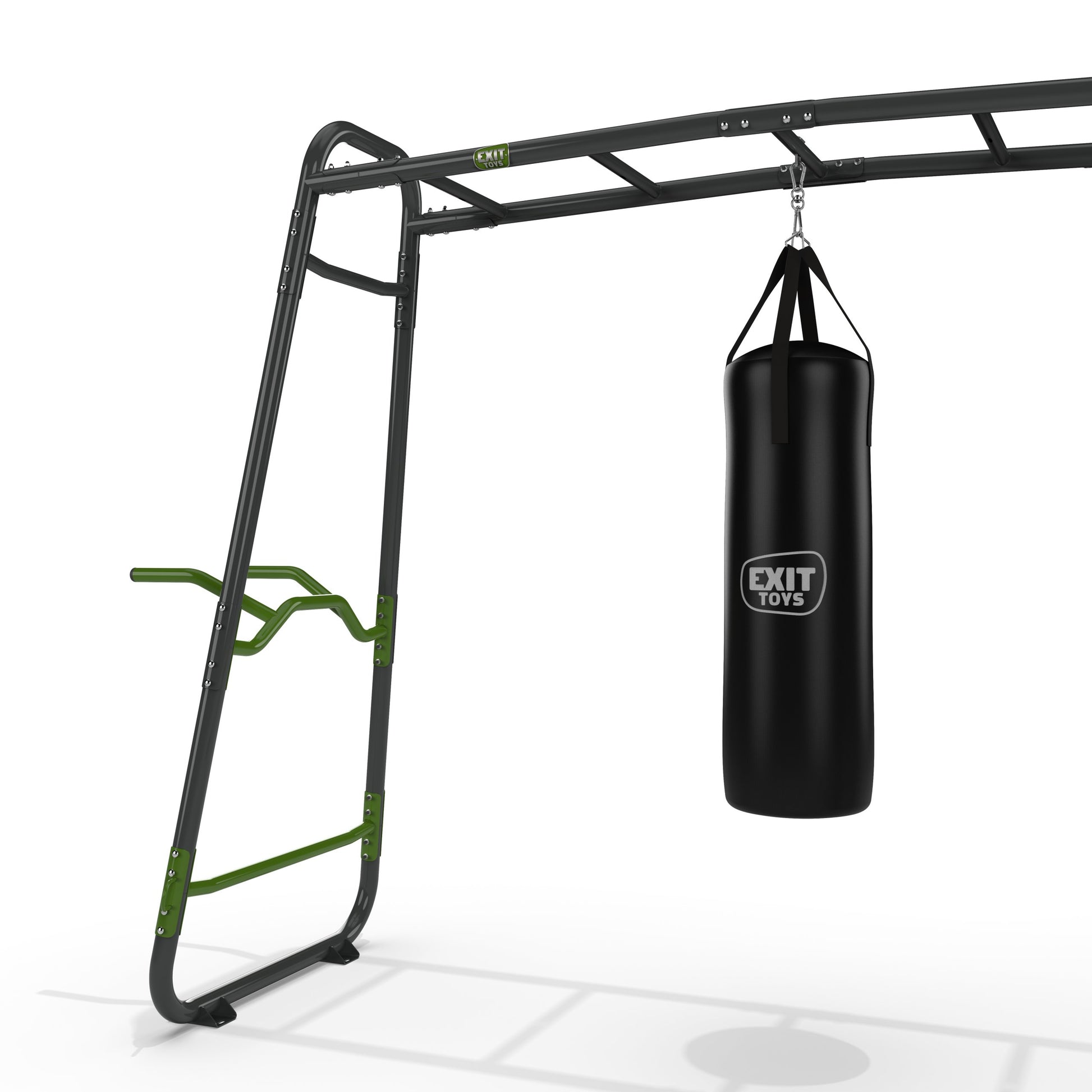 Nichts scheint unmöglich am GetSet PS520. Bankdrücken, Pull-ups, Push-ups, Chin-ups, Dips, Boxen, Beincurls, Hanging Leg Raises und Squats... Wer höchste Ansprüche mag, klettert an der Kletterwand in die Höhe. Für noch mehr Variationsmöglichkeiten kannst du unsere Powerstation mit zusätzlichen EXIT GetSet Zubehörteilen wie zum Beispiel mit Turnringen ausstatten. Du kannst auch einfach den Boxsack abnehmen und dich an der Monkeybar selbst ausleben. Du trainierst damit verschiedene Muskelgruppen, zum Beispiel die Muskeln in Bizeps, Rücken und Schulter und verbesserst zugleich Muskelkraft, Greifkraft und Koordination. So viele Möglichkeiten an nur einem Fitnessgerät: Was will man noch mehr?Qualität hat oberste Priorität