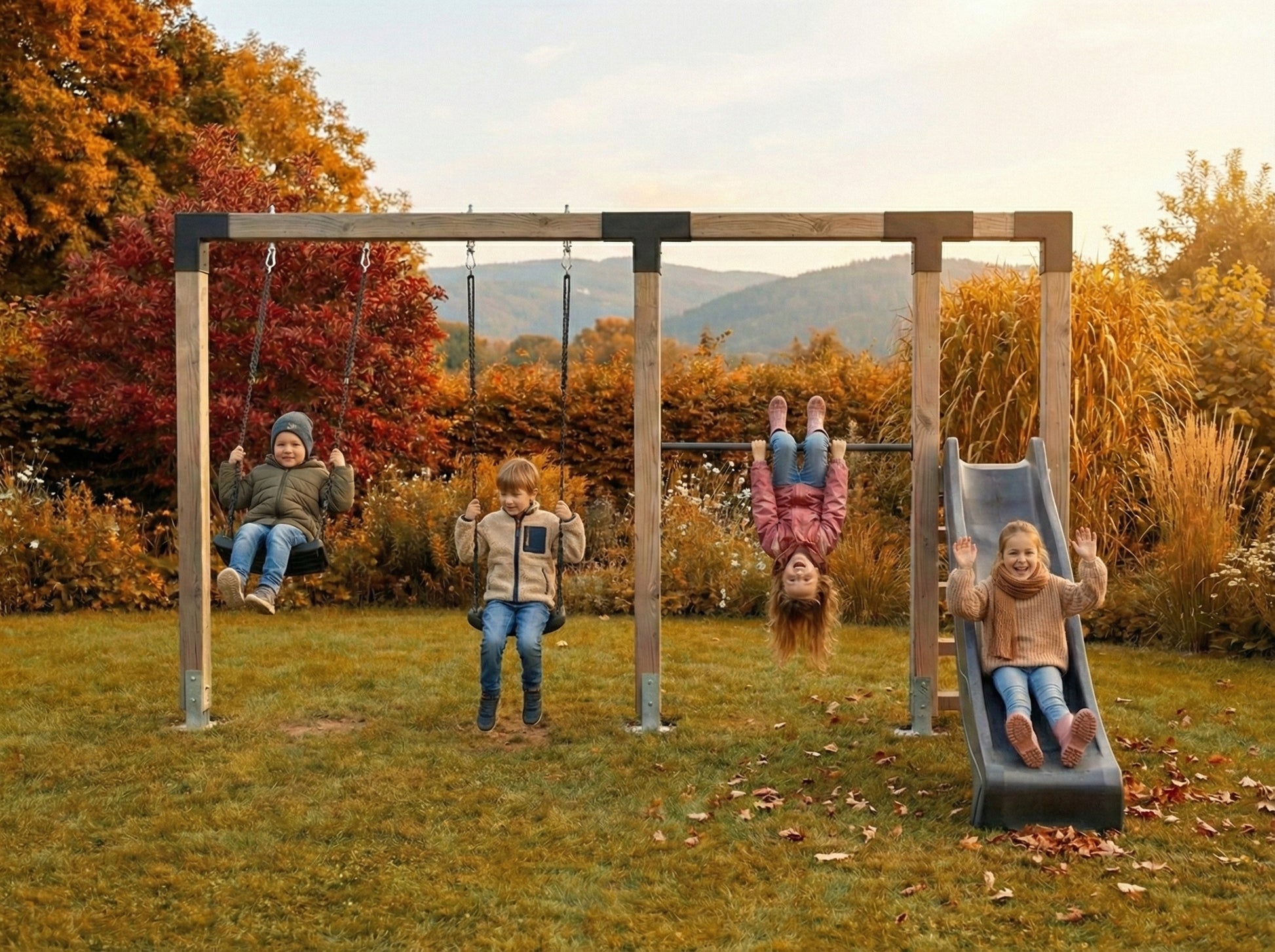 Kinder können flexibel zwischen Schaukeln, Rutschen und Turnübungen wechseln. Ob gemeinsam schaukeln, nacheinander rutschen oder neue Tricks am Reck ausprobieren – dieses Spielgerät sorgt für langanhaltende Abwechslung.