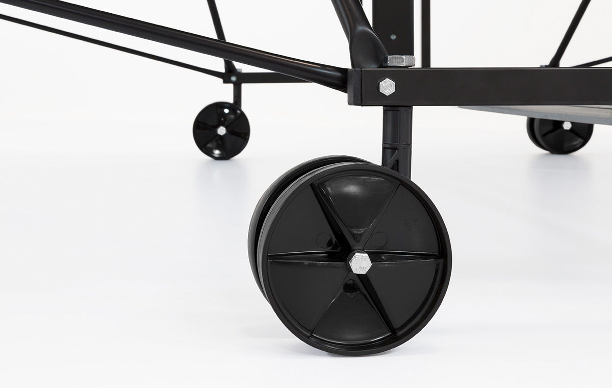 - 4 Doppelräder (Durchmesser 125 mm), alle Räder sind schwenkbar